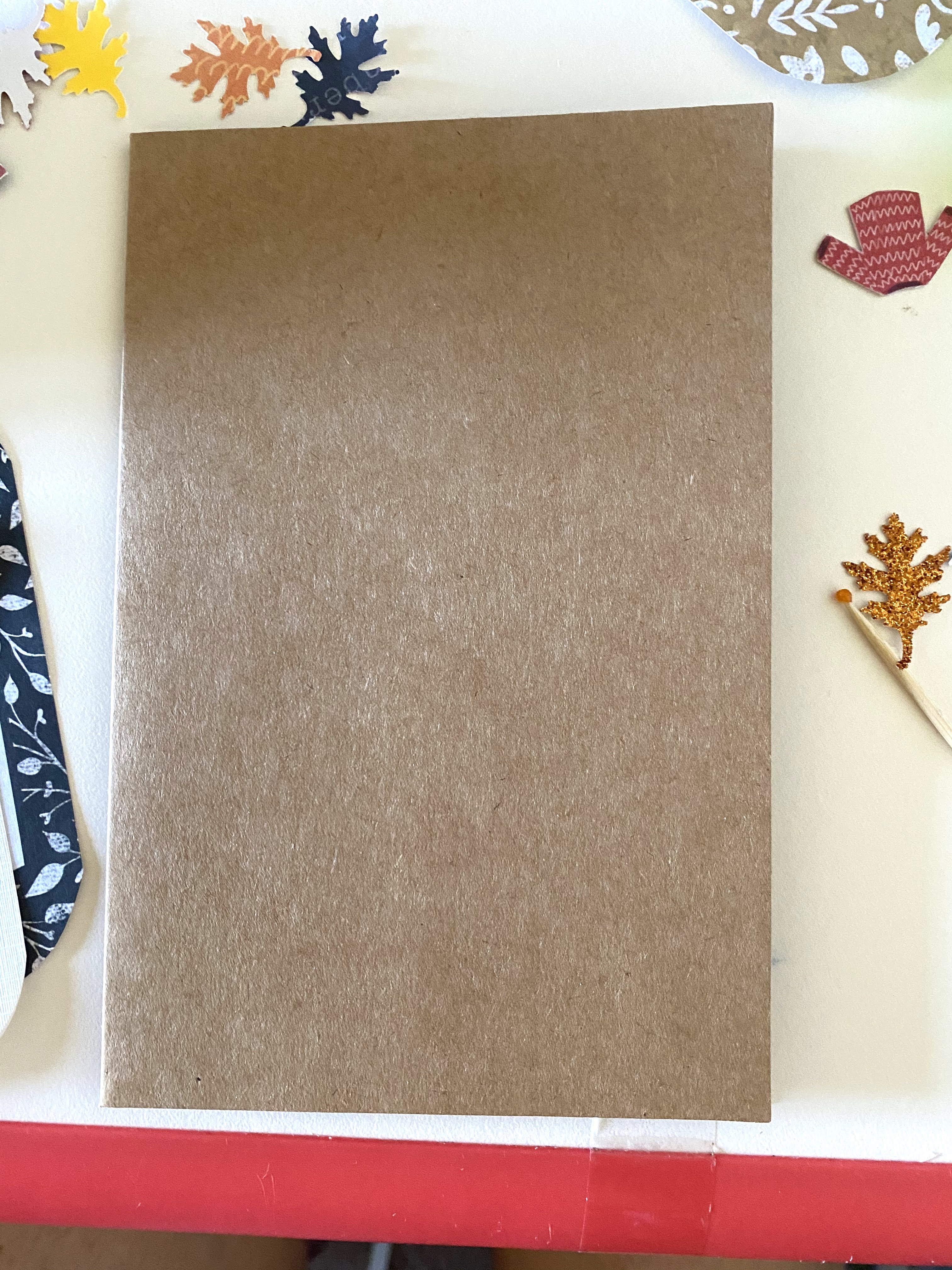Step 1. First start with a card of your choice. We chose a 4 x 6 inch card (A4) which was brown (more like cardboard or “kraft” style). Brown feels mellow and gives it a very earthy feeling.
