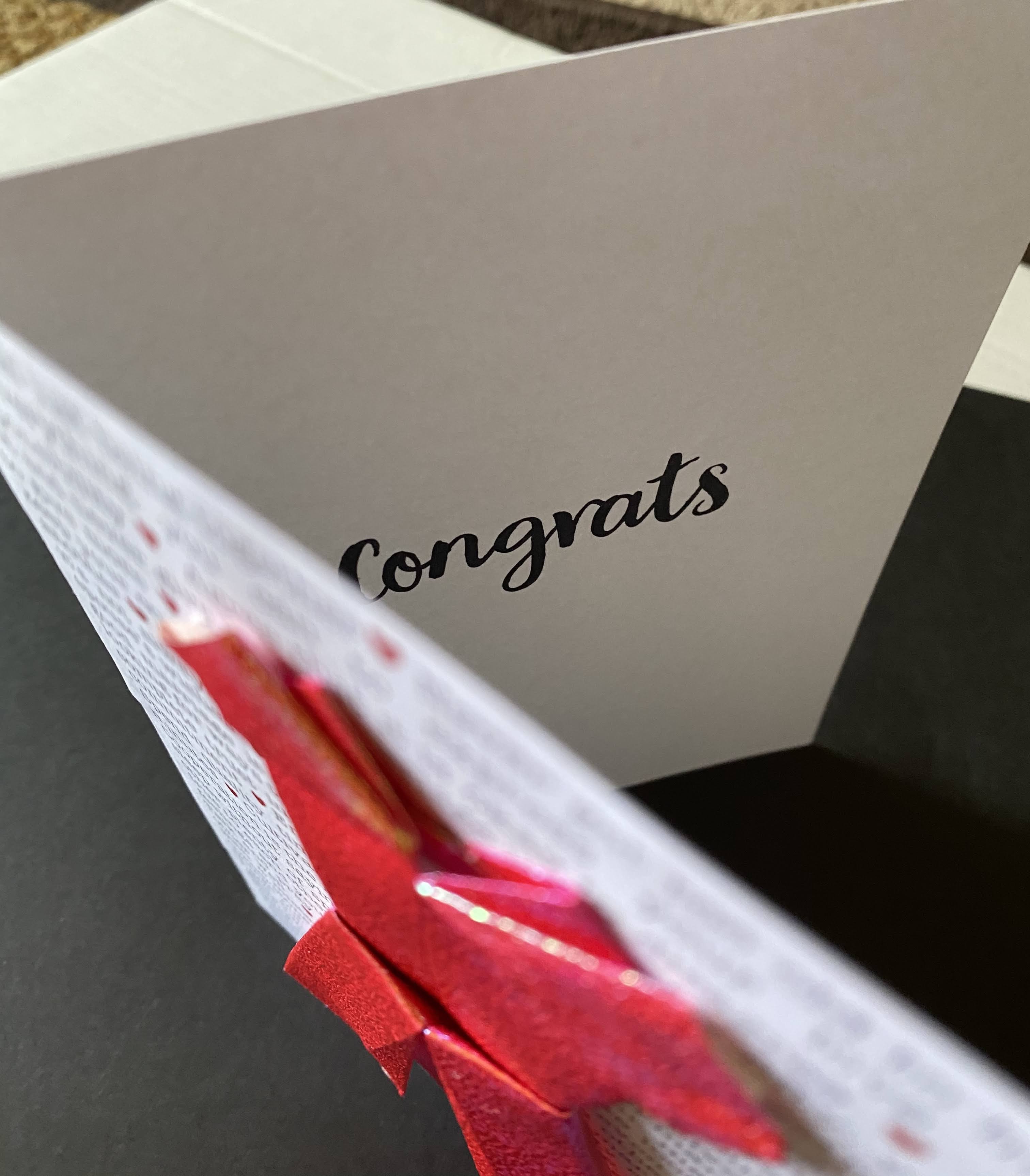 Next, we added a simple “Congrats” sentiment from a Recollections stamping set purchased from Michael’s.
